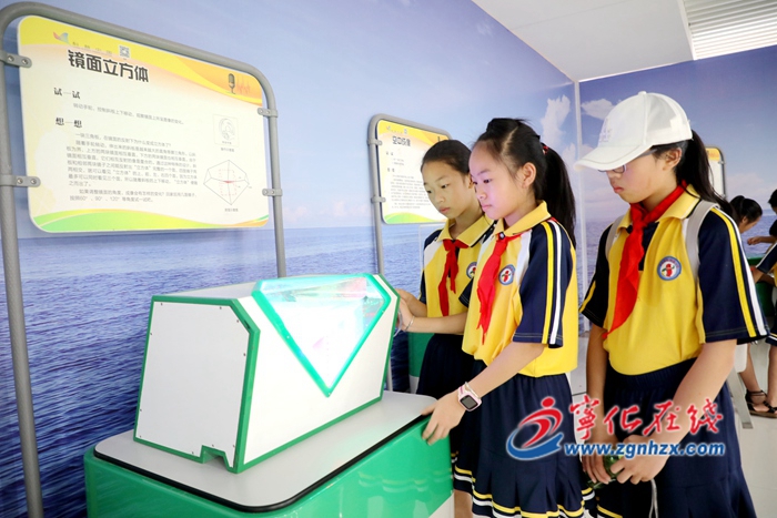 ? ? 中國流動科技館以“體驗科學”為主題,設置了聲光體驗、電磁探秘、運動旋律、生命奧秘、數學魅力等主題展區。現場共有52件小型化經典互動展品,融聲、光、電于一體,形象直觀,寓教于樂。一走進展廳,同學們就被“奇妙”的科技世界吸引了。同學們興致盎然地圍在一個個科普儀器前親身體驗,體驗豐富多彩的科技世界,感受科技的樂趣與奧秘。