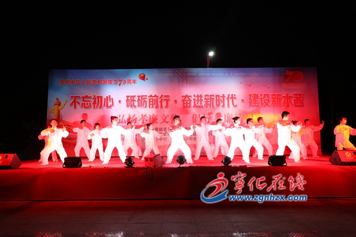 ? ? 晚會以“不忘初心?砥礪前行?奮進(jìn)新時代?建設(shè)新水茜”為主題。晚上7時,休閑廣場上人潮涌動,流光溢彩。晚會在開場舞《美麗中國走起來》中拉開序幕。氣勢豪邁、意境深遠(yuǎn)的小組唱《不忘初心》,唱響主旋律。木偶戲《包公斷案》以精致的木偶造型、精彩的劇情、精湛的演技,將非物質(zhì)文化遺產(chǎn)魅力展現(xiàn)得淋漓盡致。紅色故事《血染禾下塅》通過聲情并茂的講述,將現(xiàn)場觀眾帶回到那艱苦卓絕的紅色歲月中,催人奮進(jìn)。鏗鏘有力、慷慨激昂的詩歌朗誦《我的祖國》,引發(fā)現(xiàn)場觀眾強(qiáng)烈共鳴,全場多次響起熱烈掌聲。《紅星照我去戰(zhàn)斗》《我和我的祖國》等精彩節(jié)目接連上演。最后,晚會在大合唱《沒有共產(chǎn)黨就沒有新中國》《歌唱祖國》中落下帷幕。