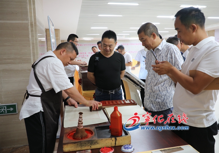 ? ? 開(kāi)幕式結(jié)束后,參會(huì)人員紛紛走進(jìn)族譜展廳,翻閱族譜,了解各大姓氏淵源。寧化七中50多名師生也到場(chǎng)參觀。隨后,木活字印刷術(shù)傳承人邱恒勇、巫松根師徒現(xiàn)場(chǎng)展示木活字印刷。寧化縣客家譜牒協(xié)會(huì)會(huì)長(zhǎng)王立華介紹了網(wǎng)上族譜的查閱流程。