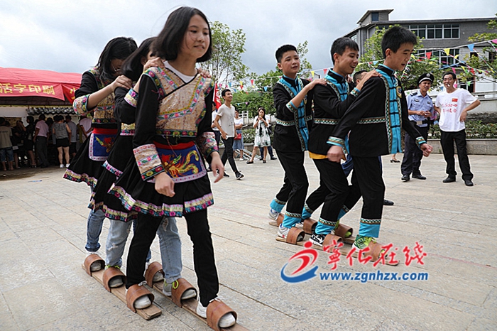 這所學校引民族體育進課堂,小學生重點學習板鞋競速,七年級學生重點學習高腳競速,八年級學生重點學習陀螺運動,九年級學生重點學習蹴球運動。從進入初中開始,每名學生需制作一副高腳,帶到學校進行訓練。該校現為三明市少數民族傳統體育項目高腳競速、陀螺的訓練基地。