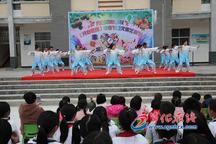 文藝匯演在三年級學生的歌聲《豐收》中拉開序幕,幼兒園孩子的走秀萌得令人開懷大笑,快板《慶豐收》、歌曲《走在鄉間的小路上》、歌舞《秋天多么美》、詩朗誦《秋的收獲》《又是一年豐收時》等節目精彩紛呈,充分展示孩子們對勞動的熱愛。教師氣功表演《八段錦》、石頭畫興趣小組作品展等節目,一次次將活動推向高潮。文藝匯演在九年級學生的合唱《稻香》中緩緩落幕。