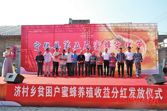 寧化濟(jì)村鄉(xiāng)貧困戶蜜蜂養(yǎng)殖收益分紅發(fā)放儀式。 (賴全平攝)