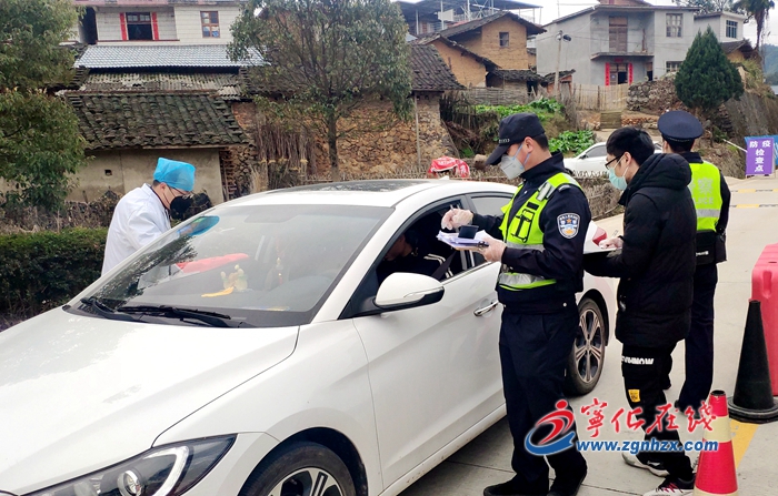 2月10日,在寧化縣安樂鎮(zhèn)黃莊村縣際交界卡口,工作人員正在開展測(cè)溫、勸返及排查登記工作。