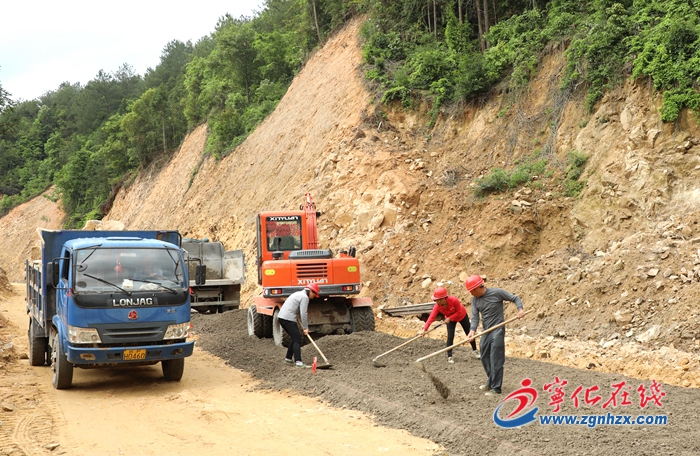 5月8日,在寧化石壁鎮鄉道石壁至隆陂水庫公路改擴建施工現場,馬達陣陣,機器轟鳴,整個工程正緊鑼密鼓推進中。該項目總投資1125萬元,總里程6.299公里,于去年3月開工建設,路基寬7.5米,路面寬6.5米。目前已完成投資933余萬元,預計6月中旬全面完工。