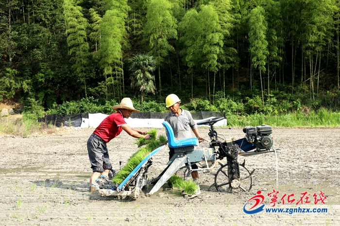 初夏時節,在寧化縣中沙鄉制種大戶夏祥貴的雜交水稻制種基地,一盤盤綠油油的秧苗在插秧機的高速運轉下鋪滿水田。寧化縣把雜交水稻制種作為富民產業來抓,大力推廣雜交水稻全程機械化制種技術,制種基地擴展到15個鄉鎮,參與農戶達5000多戶,制種面積達3萬余畝,實現年產值8000多萬元。 (記者 范日樑 攝)