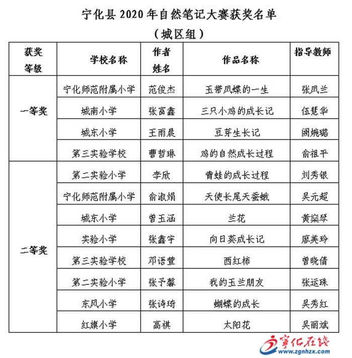 寧化縣青少年自然筆記大賽結(jié)果揭曉