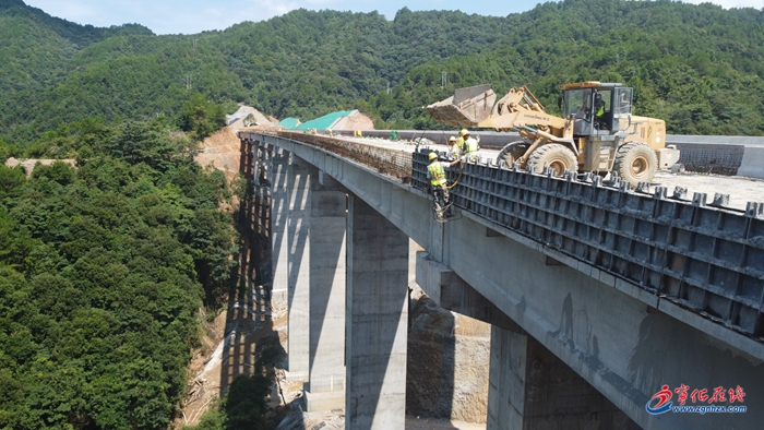 其中,路面水穩(wěn)底基層已完成87%的鋪設(shè),路基土石方完成100%,涵洞、通道完成38道,橋梁墩柱(含蓋梁)完成155個(gè),梁片安裝累計(jì)完成567片。