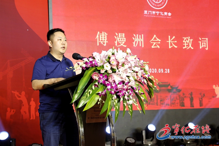 晚上6時許,伴隨著嘹亮的國歌,廈門市寧化商會十周年活動拉開序幕。全體人員觀看廈門市寧化商會成立十周年宣傳片《風雨兼程 十年跨越》,商會會長傅漫洲回顧商會十年風雨歷程。