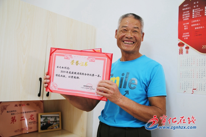 這幾天,城郊鎮幸福家園的陳元標老人很興奮。因為,他獲得了敬老院第二季度“遵規守紀”標兵稱號。敬老院為他頒發了獎狀,獎勵了零花錢。