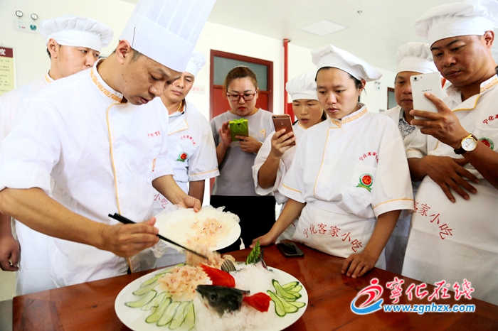幾年來,市、縣扶貧開發協會投入培訓資金30多萬元,舉辦寧化客家小吃培訓班65期,免費培訓學員3345名,其中貧困學員751名,貧困學員獨自經營或與他人合伙形式開辦44家,帶動180多名貧困人員在各類餐飲店幫工幫廚。