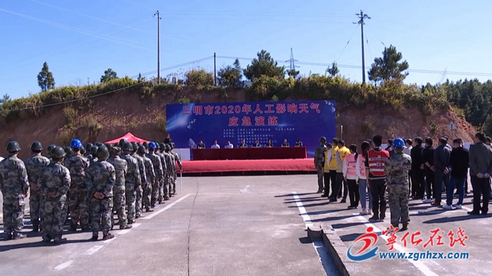 11月12日,三明市在寧化開展市2020人工影響天氣應急演練。省氣象局副局長張長安、省公安廳治安管理總隊總隊長陳小兵、副縣長黃棟等領導參加演練。