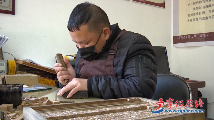 鏡頭前,省級非物質文化遺產寧化木活字印刷術傳承人邱恒勇通過網店“寧化縣木活字作坊”和客戶進行在線交流,洽談木活字雕刻事宜。