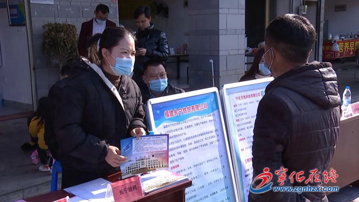 1月20日,寧化縣城南鎮舉行服務園區企業用工專場招聘會,吸引眾多人才前來咨詢求職。
