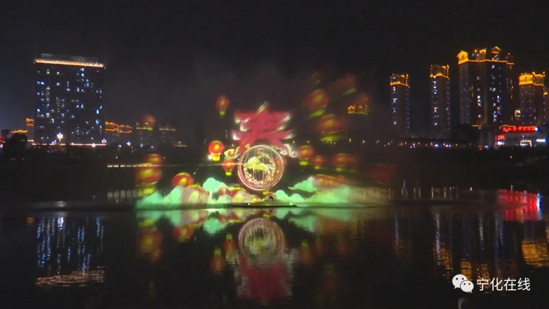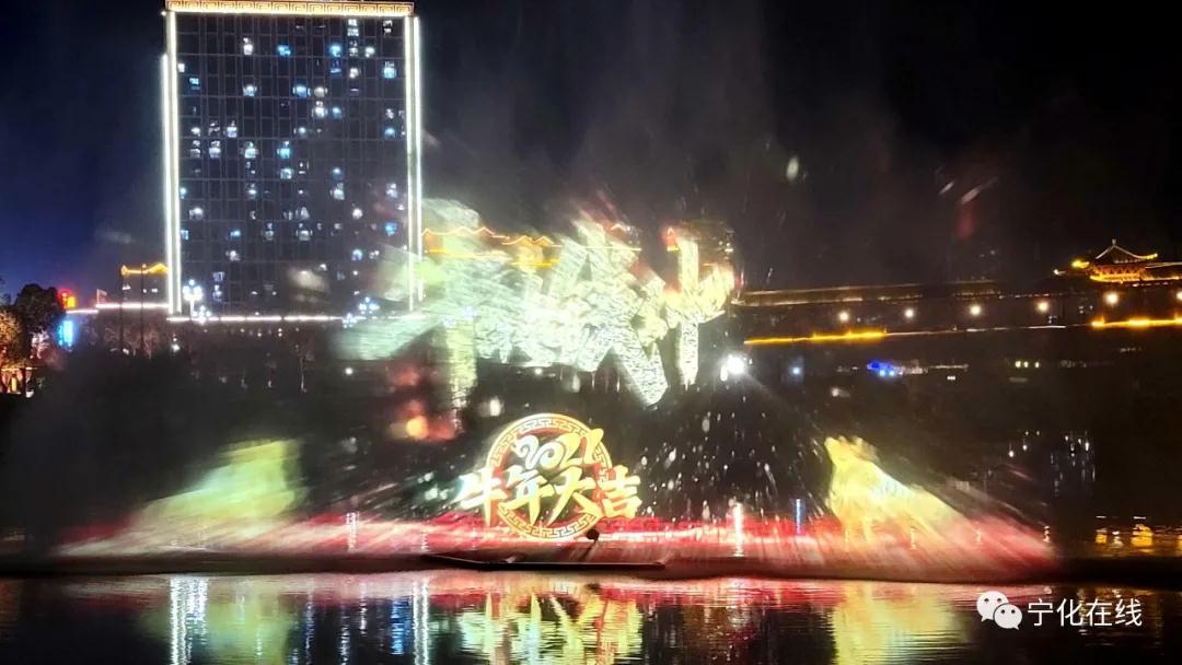 【平安守望 情暖牛年】寧化:3D水幕秀電影扮靚節日城市夜景