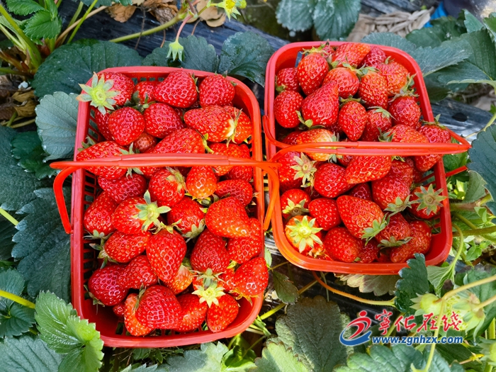 在城南鎮魚龍村伍家坊生態采摘園,草莓已經進入采摘高峰期。春節期間,近500名游客走進采摘園采摘草莓。
