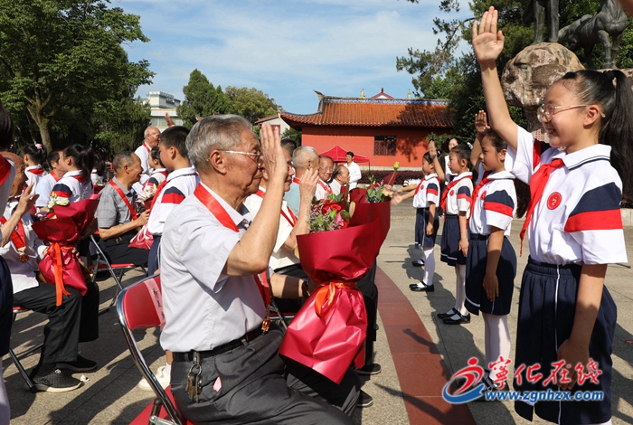 儀式在嘹亮的軍號聲中拉開帷幕,少先隊員獻唱《我們是共產主義接班人》,參加抗美援朝的老黨員張美庚作了發言。