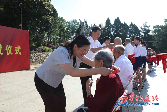 隨后,汪志紅、馬志凡等縣領導走到老黨員代表身邊,為他們戴上“光榮在黨50年”紀念章。紀念章紅色與金色相襯,黨徽、五角星、旗幟、豐碑、向日葵等在陽光下閃耀。