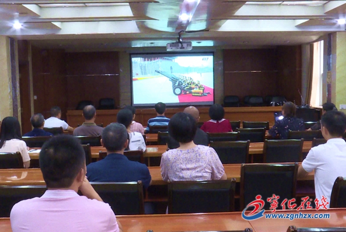 在縣委一樓會議室,縣委書記王勝文,縣委副書記、代縣長吳茂生,市委巡察組原副組長、副處級巡察專員、二級調研員謝幼宏,廖祥初、李平生、馬志凡、張葆蔚等縣領導集中收聽收看慶祝大會盛況,認真學習領會習近平總書記的重要講話精神。(記者?張煌鵬 范日樑)?