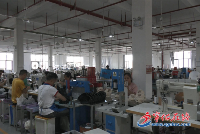 位于小微企業孵化園的環成鞋業就是最近引進的項目之一,在它的生產車間中,工人們正在趕制訂單,沖料、批皮、切割、針車,生產非常繁忙。