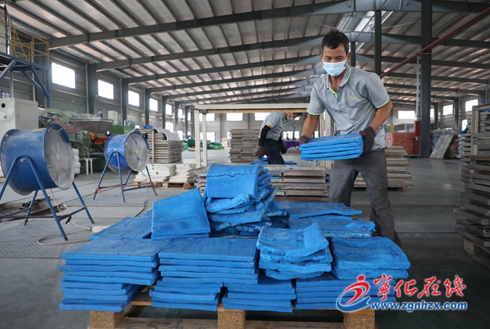 8月24日,在寧化縣青塘化工集中區(qū)的福建瑞升體育科技有限公司生產(chǎn)車間里,工人正在趕制來(lái)自廈門(mén)、泉州等地的EPDM膠板及塑膠顆粒訂單。
