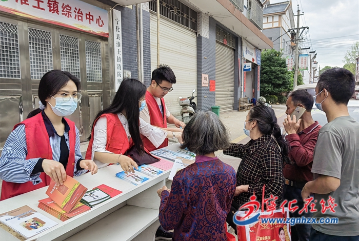 4月13日,淮土鎮綜治辦、司法所、團委在集鎮街道開展全民國家安全教育日普法宣傳活動。