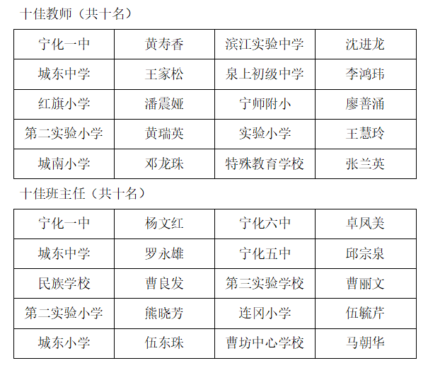 寧化縣評選出10位縣“十佳教師”和10位縣“十佳班主任”