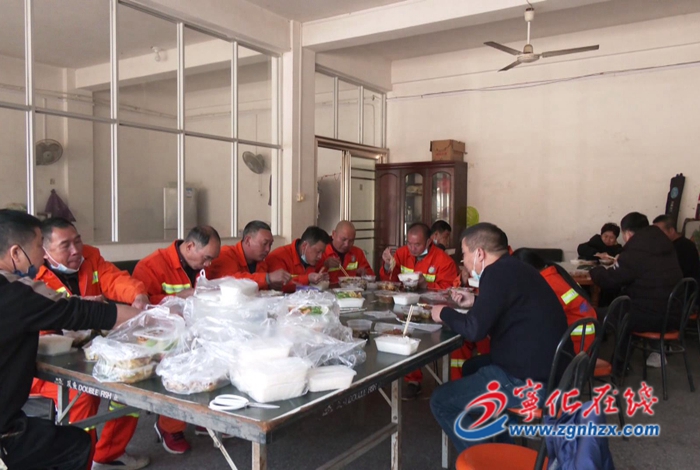 1月20日,寧化縣城管局在城區環境衛生管理站舉辦環衛工人集體用餐活動,45名環衛工人依班次在站內集體用餐并領取慰問品。