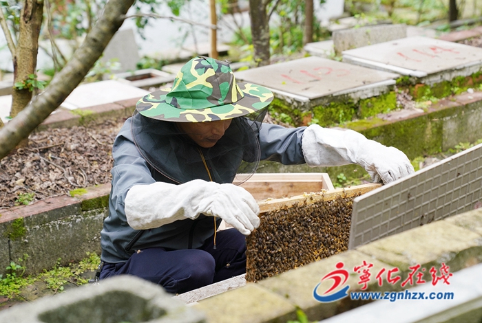 “我們眼下在做的工作是分蜂,把我們的蜂群一箱變兩群,兩群變四群,為未來六月份的大流蜜期做準備。”施河林介紹。