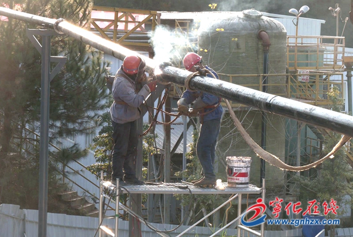 12月15日,記者來到寧化行洛坑鎢礦非金屬資源回收項目建設現場,只見吊車正在安裝行車設備,工人們正在進行產品倉庫屋頂檁條安裝、焊接進漿管道等工作,磨礦浮選車間、產品庫及變電所、產品倉庫等廠房已拔地而起、初具雛形。整個項目現階段正在開展主體設備的安裝,預計在2024年一季度完成,二季度投料試車。