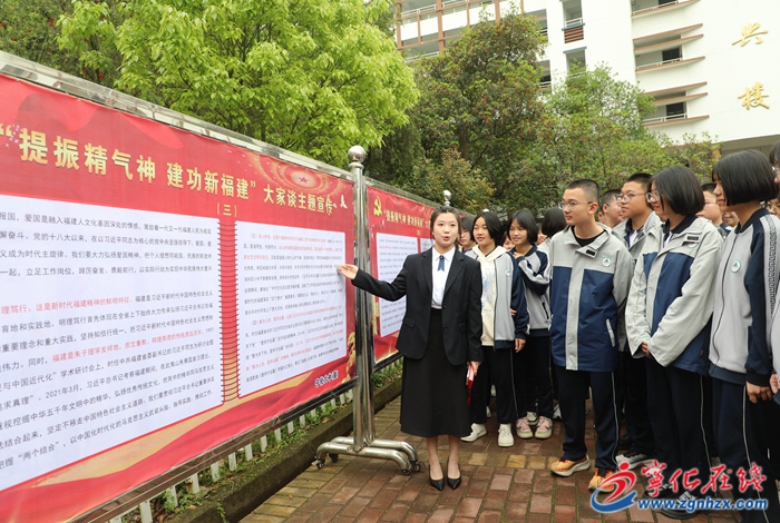 師生齊聚操場,聆聽“提振精氣神,建功新福建”主題宣講,并前往“提振精氣神,建功新福建”主題宣傳欄前進(jìn)行閱讀與交流,從中汲取奮進(jìn)之力。當(dāng)天也是學(xué)生團日活動,學(xué)校還舉辦了“提振精氣神,建功新福建”主題班會及“我的青春我的團”紅色演講比賽。