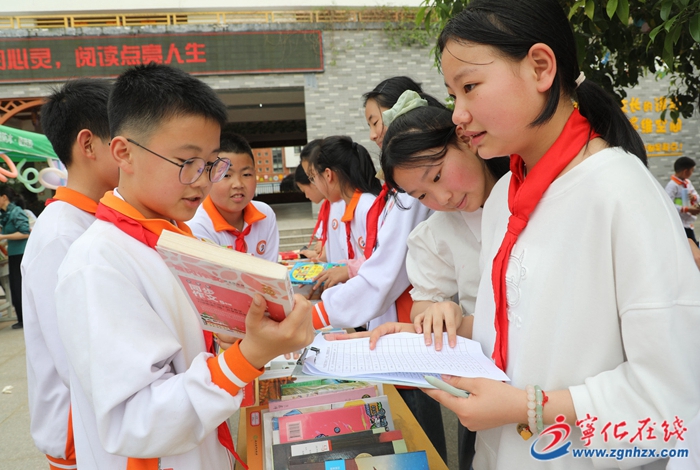 當天下午,學校操場上人聲鼎沸,一個個圖書展攤前,琳瑯滿目的書籍讓大家目不暇接。由各班推選出的圖書推薦員將圖書擺上桌面,家長志愿者和小“攤主”們熱情地向同學們介紹圖書。同學們手持書券,輾轉各班書攤,精心挑選喜愛的圖書?!斑@次的圖書漂流活動,讓我們自由兌換喜歡的書籍,在書海里暢游,我受益匪淺,我非常喜歡這次圖書漂流活動?!睂W生黃歆雨說。
