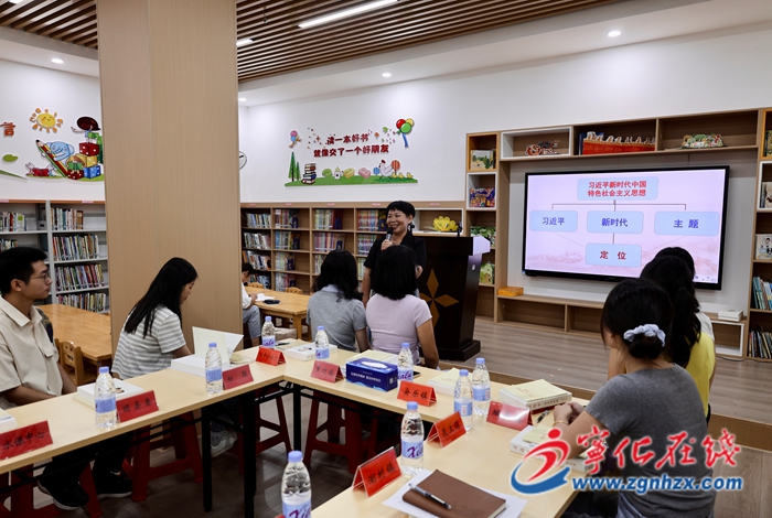 活動伊始,新華社短片《讀書之美》與三明市城市品牌宣傳片《風展紅旗 如畫三明》的播放,為現場營造了濃厚的學習氛圍。隨后,原縣委黨校高級講師賴美華帶來了一堂精彩的《學習新思想 建功新時代》思政課,全體人員還共同誦讀了《習近平談治國理政》第五卷、《習近平文化思想學習綱要》的內容節選。