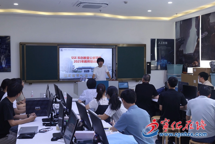 9月29日,上海專家團(tuán)隊在寧化濱江實驗中學(xué)為5所學(xué)校的信息技術(shù)及科學(xué)教師開展線下培訓(xùn),從“課程介紹”“授課流程”“人工智能培訓(xùn)”三個方面,系統(tǒng)講授了課程大綱、科創(chuàng)課程理論知識、科創(chuàng)課程實操技能、學(xué)生培訓(xùn)方式等內(nèi)容。