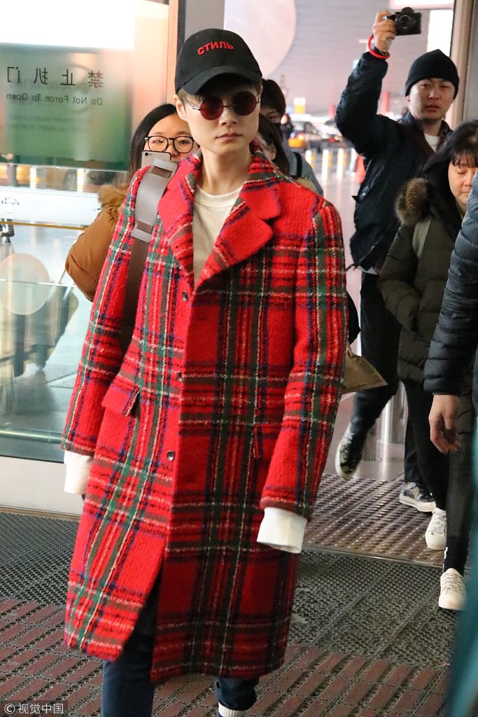 2018年1月13日,北京,李宇春現(xiàn)身機場。 李宇春紅色呢子大衣加身。長襪外露干練又帥氣。
