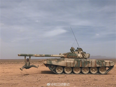 杜江和他在《紅海行動》中一同作戰的坦克。