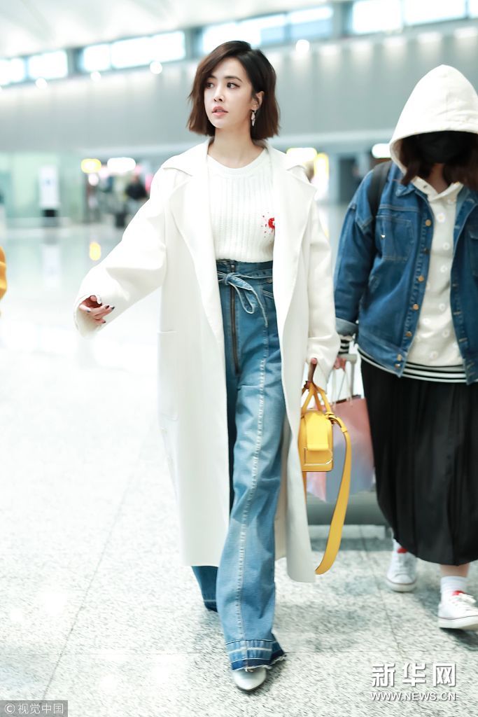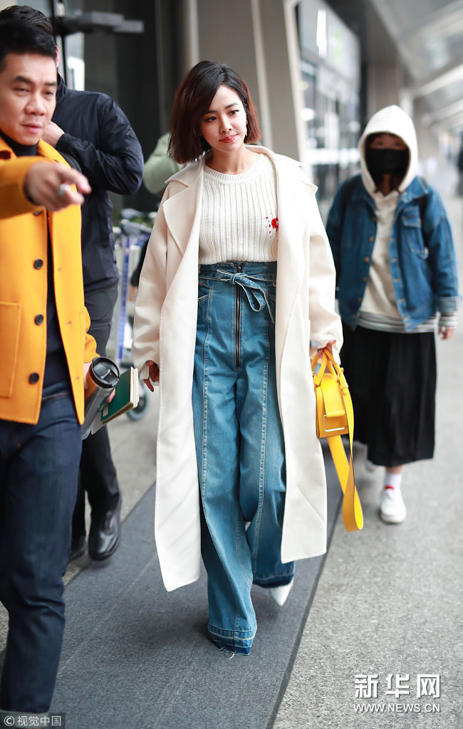 2018年3月7日,上海,蔡依林亮相機(jī)場(chǎng)。