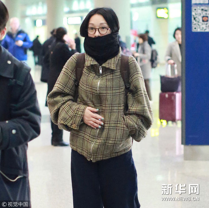 2018年3月11日訊,北京,周迅素顏現身機場,黑色圍巾包裹 一身樸素打扮。
