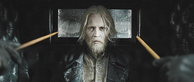 隨著鄧布利多的一句“我不能對抗格林德沃”響起,鏡頭來到最讓人驚喜的——由約翰尼·德普扮演的格林德沃的正臉出現,他坐在被囚的馬車中,雪白的皮膚,凌亂的頭發,目光狂野??磥碓姜z對格林德沃來說輕而易舉,而鄧布利多也對紐特說完了囑托,“我不能輸給格林德沃,對付他的必須是你”,看來鄧布利多正式宣布與他昔日情人格林德沃開戰,由于過去的羈絆,他選擇紐特作為對抗者。(J·K·羅琳在成書時就公布鄧布利多與格林德沃是戀人,這個設定將繼續放在影片中)。片尾,紐特和色修斯兩兄弟聯手康迪,將魔杖插入地表引起火紅的地裂,氣勢恢宏。