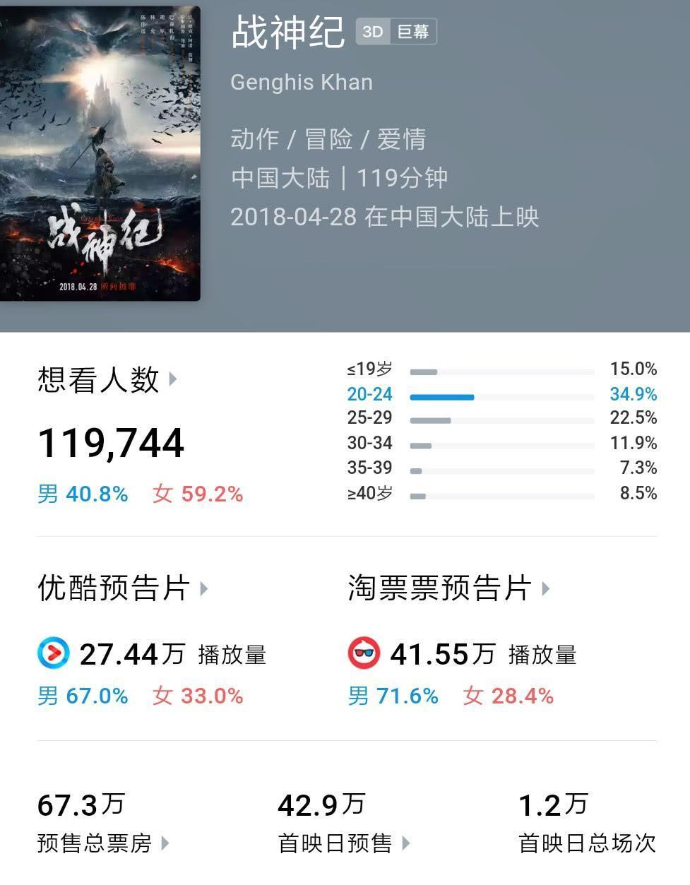 預售成績不但會影響院線經理的排片判斷,還會間接五一檔普通觀眾的購票判斷,特別是“預售破億”的新聞點,刺激更多普通觀眾購買預售票。不過,來看看同檔期的其他電影,陳偉霆主演的二次元風味頗濃的動作冒險電影《戰神紀》和徐崢主演的懸疑犯罪片《幕后玩家》預售總票房都不超過100萬,到4月28日,《幕后玩家》、《戰神紀》和《低壓槽》三片的排片占比加起來才跟《后來的我們》相當。