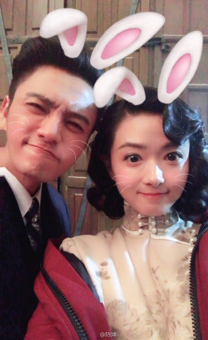 陳坤頂兔子耳朵合影萬茜 側(cè)顏精致俊美萌態(tài)十足