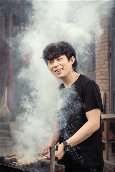 T恤是從工作室角落里隨手抽出來穿上的,夾腳拖是胡同口超市里最基礎的款式,而沒有任何修飾的面龐上,還殘留著凌晨四點錄完音的熬夜痕跡——當這樣的北京孩子趙雷站在烤爐前,汗流浹背地翻動著羊肉串兒、揮灑著辣椒面兒時,有一瞬間,你很難與舞臺上那個抱著吉他歌唱的他重疊在一起。但他手一揮,毫不在意,“在我這兒,沒那么多規矩啊。”