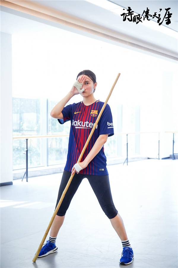 7月25日,徐浩峰正在拍攝的武俠電影《詩眼倦天涯》發(fā)布一組主演宋佳的練功照。宋佳身著輕便的運動裝,手持長棍在練功房中專注練習。在影片中有大量動作戲的宋佳腳下步伐緊湊穩(wěn)健、手中長棍揮灑自如,提前為電影的拍攝做足準備。