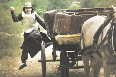 葛優(yōu)在《讓子彈飛》中演繹了夸張的、卡通式的丑角形象馬邦德。