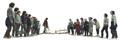不甘心的張總找到一處大船殘骸,在這里有文明的“遺產(chǎn)”:現(xiàn)代社會(huì)里的紅酒、雪茄、洗澡水、毛巾、大型漁網(wǎng),和重新發(fā)行通行貨幣:撲克牌。當(dāng)人群抵達(dá),使用打火機(jī)的同伴先于燧木取火的人一步點(diǎn)燃火光,故事翻開了資本主義社會(huì)的篇章。