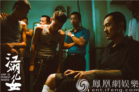 在其中的一張劇照中,斌哥與兄弟們一起在錄像廳看香港電影《英雄好漢》,這部影片是由黃泰來執導,周潤發、劉德華、萬梓良主演。相比《英雄好漢》這種香港電影里所呈現的江湖暴力美學,賈樟柯鏡頭下的江湖世界更加寫實,更加注重江湖情義的傳承與信守。電影《江湖兒女》中的插曲也正是由賈樟柯最喜歡的歌手葉倩文演唱的《淺醉一生》,賈樟柯曾說“葉倩文的歌聲比較江湖濃情,有情有義。”這不是賈樟柯第一次使用葉倩文的歌曲,曾在電影《二十四城記》中,就用過《淺醉一生》,在電影《山河故人》中,用過《珍重》,這足以看出賈樟柯對葉倩文歌曲的喜歡。