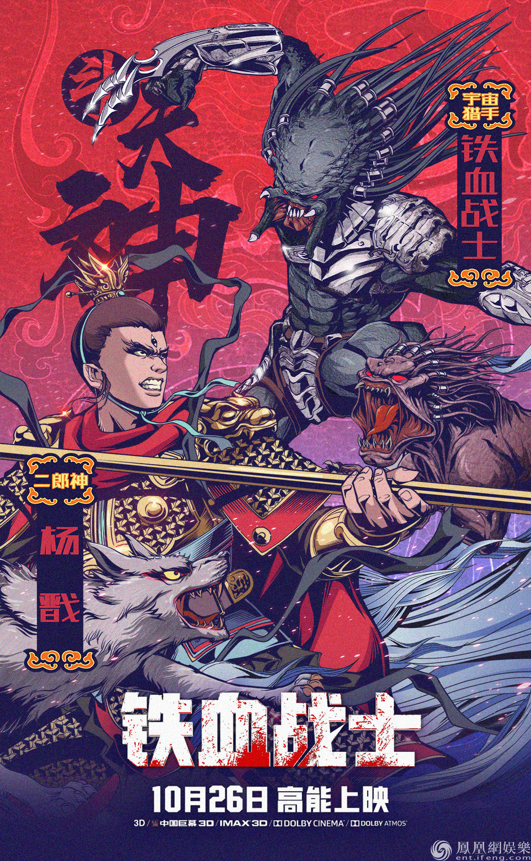 此次曝光的海報中,首先出場的便是二郎神楊戩,顏值擔當的他不僅武力值MAX,同時還有著“能吃月亮”的寵物哮天犬。而在海報中可以看到,此次出征地球的鐵血戰士新加入的物種——“鐵血狗”也出現其中。一位是執行人間意志,在天地間縱橫捭闔的天神楊戩并攜帶著寵物“哮天犬”,一位是肆意宇宙的最強獵手攜帶寵物“鐵血狗”,不僅諸神遭遇挑釁,連寵物也如此登對,著實讓人感嘆這些鐵血戰士的高昂戰意,就問中國影迷,敢約嗎?