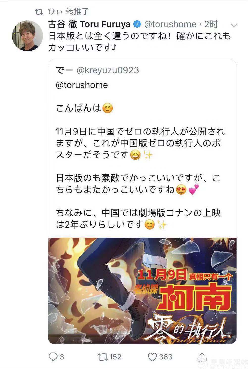 日版安室透聲優(yōu)古谷徹老師轉(zhuǎn)推稱贊