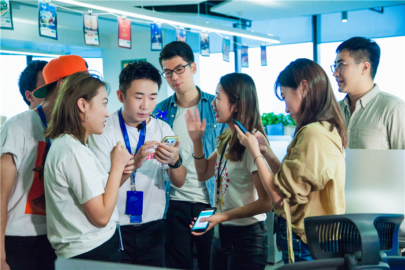 與走街串巷的劉維和敢姑娘不同,楊迪和小菌化身“一日員工”,在騰訊濱海大廈完成了全部拍攝。旁聽過微視團隊關于舞蹈類短視頻的小課堂,楊迪和小菌活學活用,跟騰訊員工就地拍起了流行的“香水舞”。他們還在騰訊空間見證了QQ、微信的發展史,和機器人打冰球,花式體驗當下最前沿的科技成果。