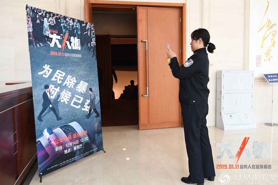 即將于2019年1月11日上映的電影《“大”人物》,12月14日在公安部報告廳組織了一場內部超前觀影活動,據悉這也是公安部首次組織此類活動,具有現實社會意義的犯罪動作題材得到了全體公安干警的大力支持,可容納700人的報告廳座無虛席。