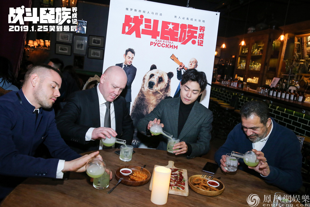 近日,“戰斗男團”三位男士在沒有女主伊拉的“管控”下,集體空降三里屯一酒吧,與現場顧客共同啟動“戰斗民族開年酒局”,上演酒量比拼戰。“男人幫”接連下肚電影《戰斗民族養成記》的專屬定制伏特加酒,圍觀的群眾紛紛贊嘆:“俄羅斯人不愧是把伏特加當水喝的民族”。不僅如此,“寡頭爸爸”實力還原了電影中的情節,邀請粉絲來了一場戰斗民族輪盤賭的喝酒游戲,互相戲說繞口令場面也十分爆笑。酒酣時,羅馬爆發了強烈的創作欲,在電影《戰斗民族養成記》的主海報上進行即興涂鴉,將三位主創的臉畫得十分搞怪。